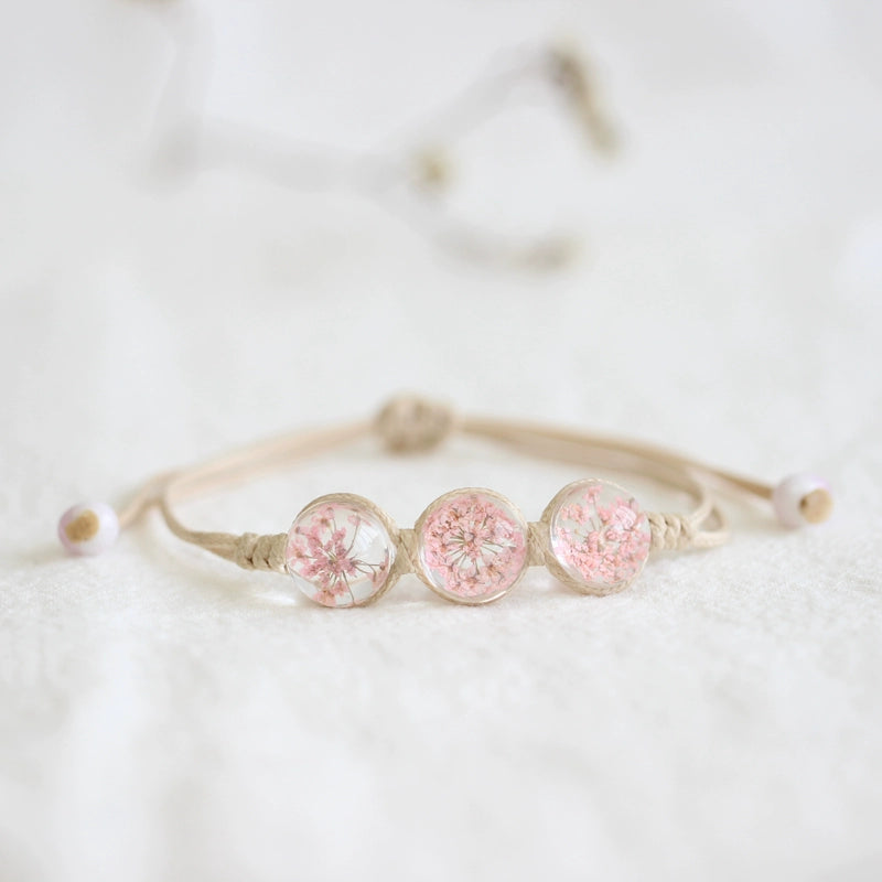 Bohemian Glass Flower Bracelet - Lace-Embellished Floral Charm Jewelry for Couples