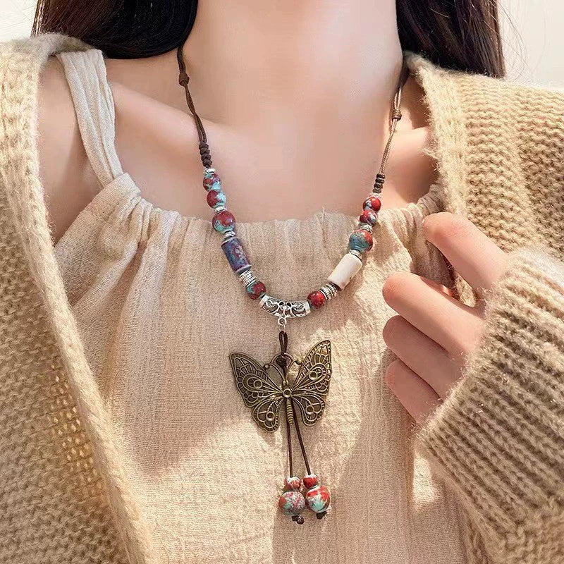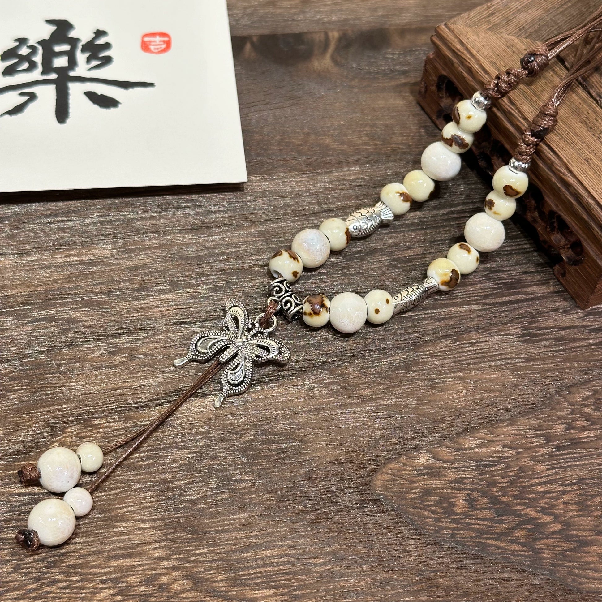 Chinese Resin Bead Fortune Necklace - Trendy Collarbone Chain